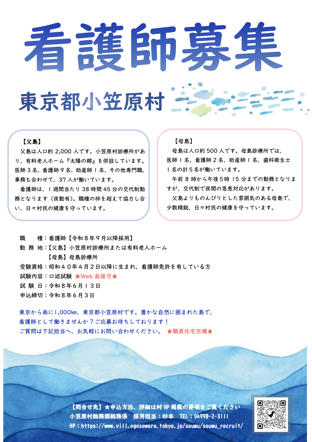 小笠原村では看護師の職員募集を行っています。